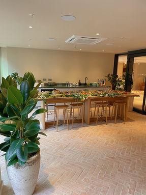 The Flat Grazing Table is the perfect setup for ALL & ANY type of Event. It is a long stretch of food, set up on a disposable table runner, where food has been placed in specific ways to create one big buffet. It is one of the most cost-efficient services that allows you to feed all guests without the normally very high per-person costs.